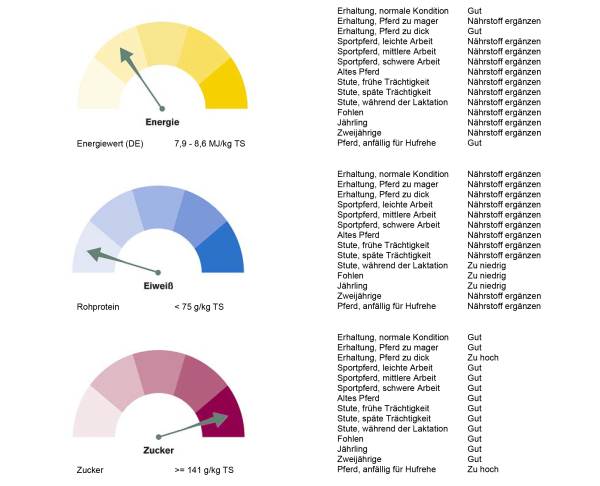 Das war doch überraschend. Das Heu von 2017 (hatten wir beim Einzug in den neuen Stall auf die Schnelle organisiert und gekauft und war ja auch sehr gut) hat im Schnitt mehr als 27% mehr Zucker als das diesjährige! Unsere Pferde haben also ein Jahr lang nun „Süßspeise“ konsumiert :o)) Auch der Energiegehalt war doch deutlich geringer! Super, das wird den Pferden nicht schmecken, aber die Figur wird es uns danken ;o) Na ja, ganz so ist es nicht, aber wir wissen nun, dass das Heu dieses Jahr etwas weniger auf die Figur schlagen wird.
