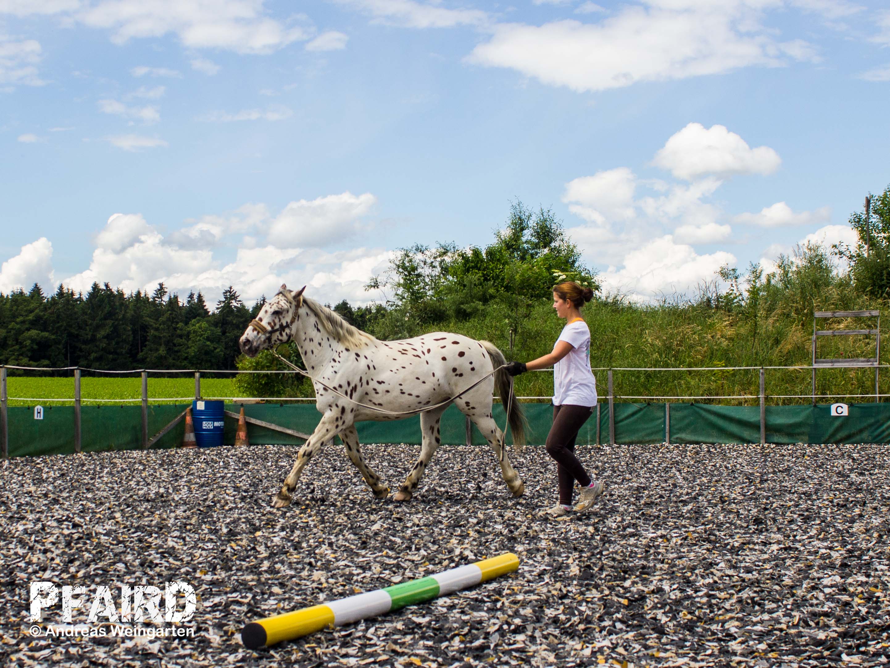 Also schaffe für Dich und Dein Pferd ein „Klassenzimmer“ für die Ausbildung. Das kann für das Fohlen-ABC der Putzplatz sein, das kann für die Bodenarbeit der Longierzirkel oder der Reitplatz sein, das kann für Führübungen aber auch ein kleiner Feldweg sein. Wo das Pferd und der Mensch sich wohlfühlen und sicher und ungestört arbeiten können, ist es richtig.