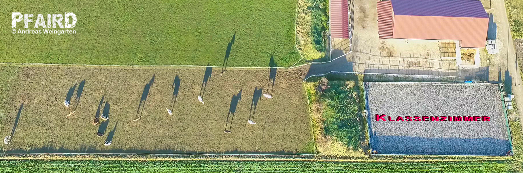 Der Paddock, die Weide und die Box des Pferdes sind bei uns in aller Regel frei von Ausbildung. Das ist „Pferdeland“! Einzige Ausnahme ist hier das Halftern (geübt wird das aber zuerst in einem „Klassenzimmer“ ohne fremde Pferde), und das Benehmen „bei Fuß“, wenn das Pferd geholt wird (auch das nur vertiefend im Paddockbereich). Füttern oder das „Ausbilden“ (Zurechtweisen, Locken etc.) fremder Pferde im „Pferdeland“ ist oft in der Folge dann mit Problemen beim Holen der Pferde behaftet (wenn Boxenpferdehalter hier nicht so recht verstehen, was ich meine: einfach mal einen Offenstall besuchen und etwas beobachten).