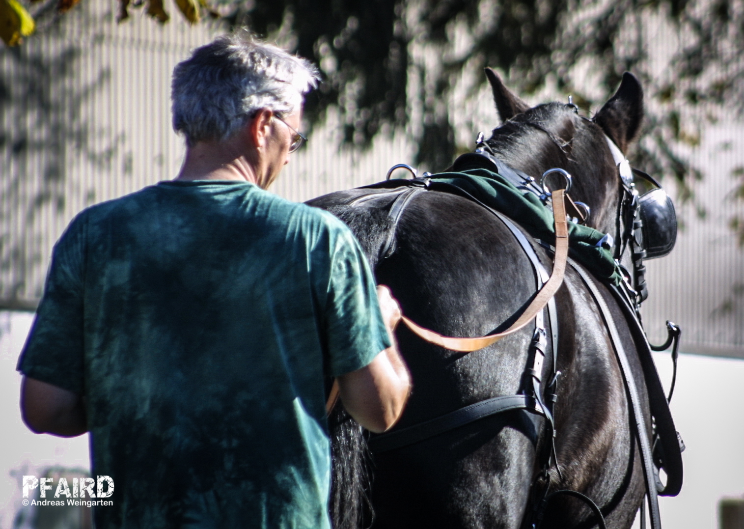 Wyoming - eine Stute mit Charakter. Ihre Besitzerin wohnte weit weg und war nur sehr selten im Stall. So durfte ich Wyoming 2005 zum Kutschenfahren „nutzen“. Im Gegenzug habe ich mich um sie gekümmert. Sie wurde gehätschelt und gepflegt und ich hatte das Glück von dieser sehr eigensinnigen Dame akzeptiert zu werden. Bis dato galt sie als eher männerfeindlich und war schroff und desinteressiert. bald schon taute sie auf und ich konnte in wenigen Wochen Ihr Vertrauen gewinnen und ihre Ausbildung zum Fahrpferd wieder aktivieren.
